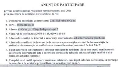 Achiziții publice Planul achizițiilor publice pentru anul 2021 conform planului de finanțare a aparatului Președintelui Raionului Cahul, Secțiilor și Direcțiilor Consiliului Raional Cahul