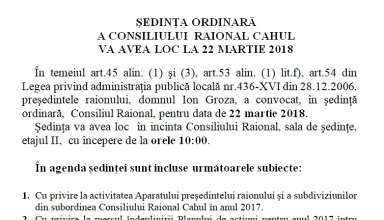 Proiecte de decizii Proiecte de decizii pentru ședința ordinară a Consiliului Raional Cahul din 22.03.2018
