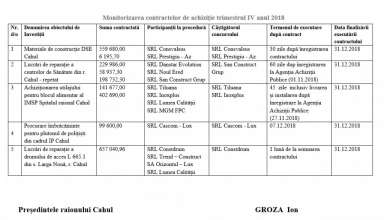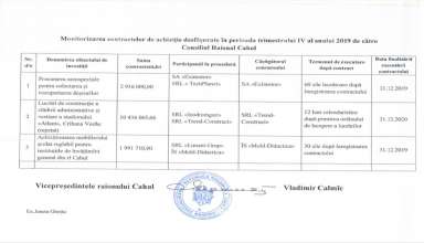 Achiziții publice Monitorizarea contractelor de achiziție desfășurate în perioada trimestrului IV al anului 2019 de către Consiliul Raional Cahul