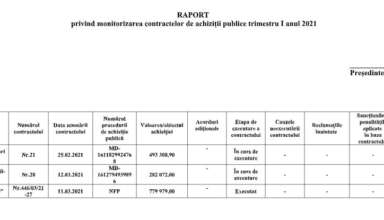 Achiziții publice RAPORT privind monitorizarea contractelor de achiziții publice trimestru I anul 2021