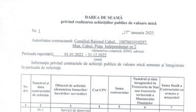 Achiziții publice DARE de SEAMĂ privind efectuarea achizițiilor publice de mică valoare efectuate de către Consiliul Raional Cahul