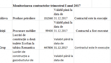 Monitorizarea contractelor trimestrul I anul 2017