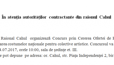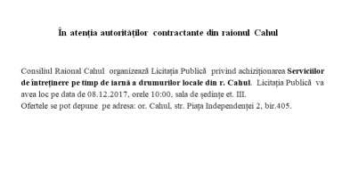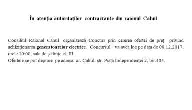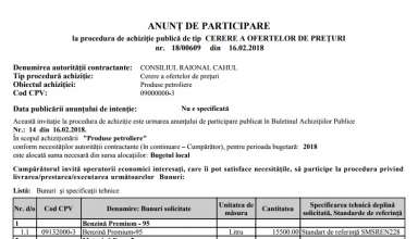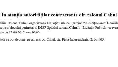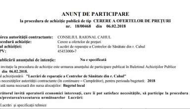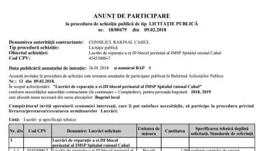 Achiziții publice Anunț de participare la procedura de achiziție publică de tip CERERE A OFERTELOR DE PREȚURI