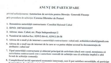 Achiziții publice Anunț de intenție privind achiziționarea serviciilor de întreținere pe timp de iarnă a drumurilor locale din raionul Cahul