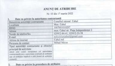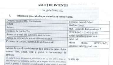 Achiziții publice Anunț de intenție privind achiziționarea ascensoarelor la Centrul Medicilor de Familie Cahul