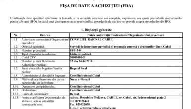 Achiziții publice ANUNȚ de participare la procedura de achiziție publică de tip CERERE A OFERTELOR DE PREȚURI