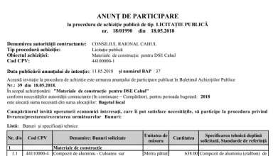 Achiziții publice Anunț de participare la procedura de achiziție a bunurilor și serviciilor prin cererea ofertelor de prețuri