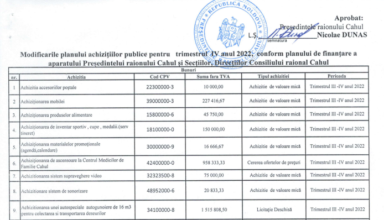 Achiziții publice Planul de achiziții publice al Consiliului raional Cahul pentru trimestrul IV al anului 2023, completat și modificat