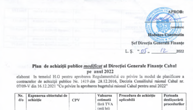 Achiziții publice Plan de achiziții publice al Direcției Generale Finаnțe Саhul (modificat) ре аnul 2023