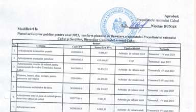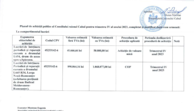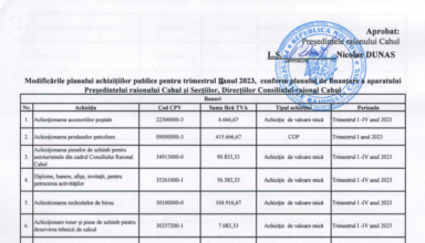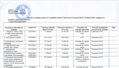 Achiziții publice Planul de achiziții publice al Consiliului raional Cahul pentru semestrul III-IV al anului 2023, completat și modificat