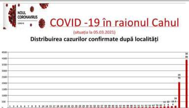 Nivelul de infectare cu virusul COVID–19 în raionul Cahul, la data de 05 martie 2021