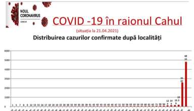 Nivelul de infectare cu virusul Covid-19 în raionul Cahul, la data de 21.04.2021