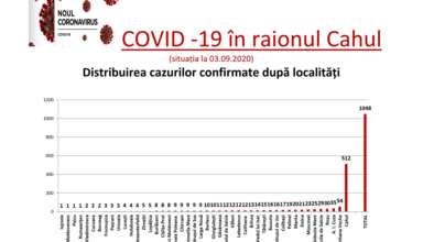 Nivelul de infectare cu virusul COVID-19 în raionul Cahul la data de 03 septembrie 2020