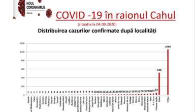 Nivelul de infectare cu virusul COVID-19 în raionul Cahul la data de 04 septembrie 2020