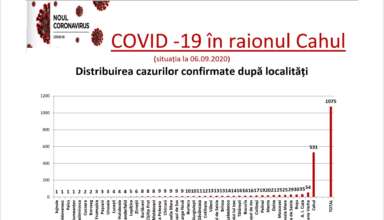 Nivelul de infectare cu virusul COVID-19 în raionul Cahul la data de 06 septembrie 2020