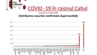 Nivelul de infectare cu virusul COVID-19 în raionul Cahul la data de 14 septembrie 2020