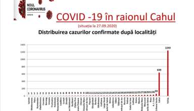 Nivelul de infectare cu virusul COVID-19 în raionul Cahul la data de 27 septembrie 2020