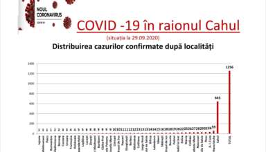 Nivelul de infectare cu virusul COVID-19 în raionul Cahul la data de 29 septembrie 2020