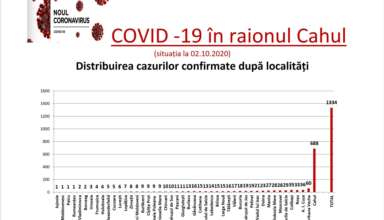 Nivelul de infectare cu virusul COVID-19 în raionul Cahul la data de 02 octombrie 2020