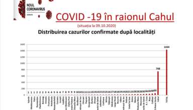 Nivelul de infectare cu virusul COVID-19 în raionul Cahul la data de 09 octombrie 2020
