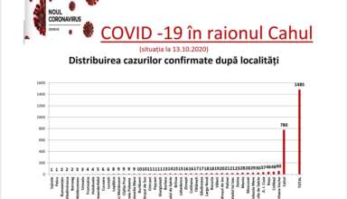 Nivelul de infectare cu COVID – 19 în raionul Cahul la data de 13 octombrie 2020
