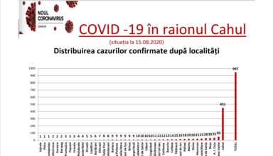 Nivelul de infectare cu virusul COVID-19 în raionul Cahul la data de 15 august 2020