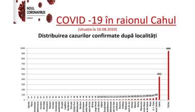 Nivelul de infectare cu virusul COVID-19 în raionul Cahul la data de 16 august 2020