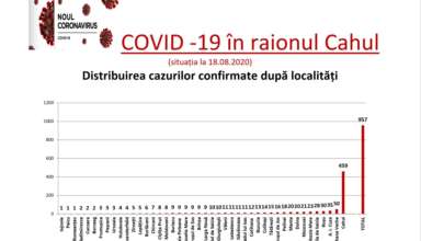 Nivelul de infectare cu virusul COVID-19 în raionul Cahul la data de 18 august 2020