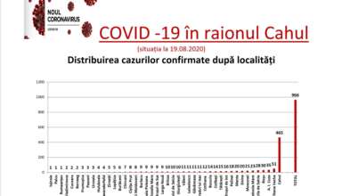 Nivelul de infectare cu virusul COVID-19 în raionul Cahul la data de 19 august 2020