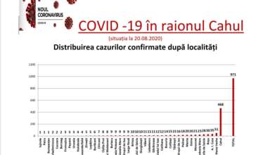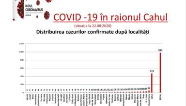 Nivelul de infectare cu virusul COVID-19 în raionul Cahul la data de 20 august 2020