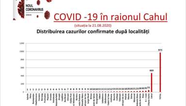 Nivelul de infectare cu virusul COVID-19 în raionul Cahul la data de 21 august 2020