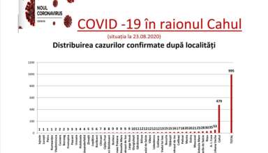 Nivelul de infectare cu virusul COVID-19 în raionul Cahul la data de 23 august 2020