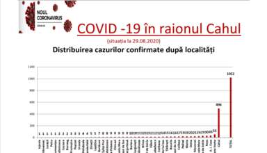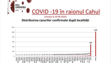 Nivelul de infectare cu virusul COVID-19 în raionul Cahul la data de 30 august 2020