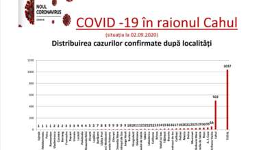 Nivelul de infectare cu virusul COVID-19 în raionul Cahul la data de 1 septembrie 2020