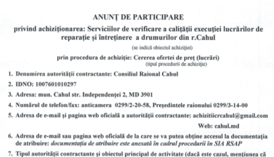 Anunțuri Anunț privind organizarea concursului pentru ocuparea funcției publice de conducere vacantă, de șef Serviciului tineret și sport din cadrul Consiliului Raional Cahul