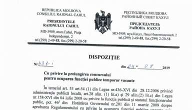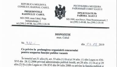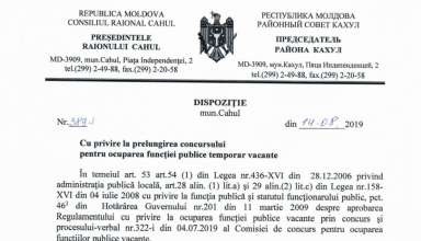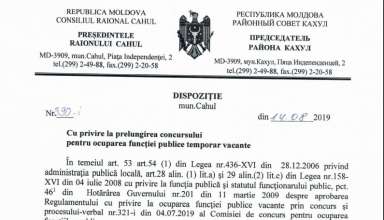 Anunțuri ANUNȚ cu privire la organizarea concursului pentru ocuparea funcției publice vacante de specialist superior, Secția Cultură, Consiliul Raional Cahul