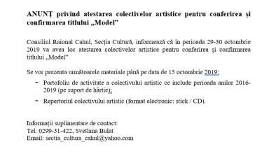 Anunțuri ANUNȚ privind atestarea colectivelor artistice pentru conferirea și confirmarea titlului „Model”
