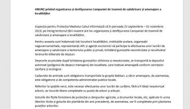 Anunțuri ANUNȚ privind organizarea și desfășurarea Campaniei de toamnă de salubrizare și amenajare a localităților