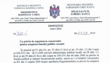 Anunțuri ANUNȚ cu privire la organizarea concursului pentru ocuparea funcției publice temporar vacante de specialist Serviciul arhivă din cadrul Aparatului președintelui raionului