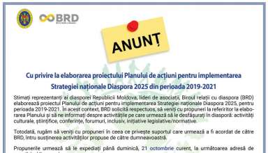 Anunțuri Anunț! Elaborarea Planului de acțiuni pentru implementarea Strategiei naționale Diaspora 2025 din perioada 2019-2021