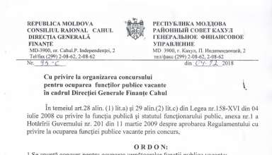 Anunțuri ANUNȚ cu privire la organizarea concursului pentru ocuparea funcțiilor publice vacante în cadrul Direcției Generale Finanțe Cahul