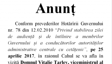 Anunțuri ANUNȚ pentru primarii localităților raionului Cahul și Comisiilor situații excepționale din teritoriu