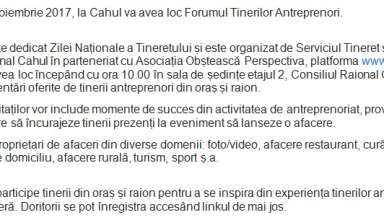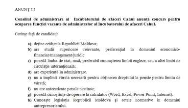 Anunțuri Anunț !!! Concurs pentru ocuparea funcției vacante de administrator al Incubatorului de afaceri Cahul
