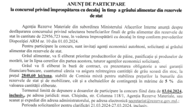 Anunțuri ANUNȚ DE PARTICIPARE la concursul privind împrospătarea cu decalaj în timp a grâului alimentar din rezervele de stat