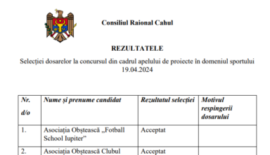 Anunțuri REZULTATELE Selecției dosarelor la concursul din cadrul apelului de proiecte în domeniul sportului