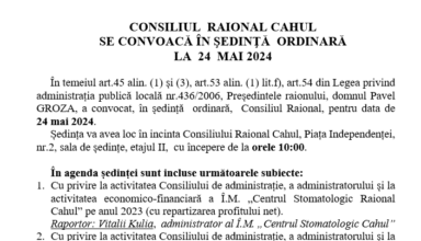 Anunțuri ANUNŢ! Se organizează audieri publice asupra proiectului de decizie privind intenția Consiliului raional Cahul de a obține statut de asociat în “SERVCOM SUD” SRL