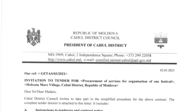 Anunțuri INVITATION TO TENDER FOR „Procurement of sevices for organisation of one festival” Slobozia Mare Village,Cahul District,Republic of Moldova”