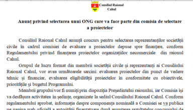 Anunțuri Anunț repetat privind selectarea unui ONG care va face parte din comisia de selectare a proiectelor