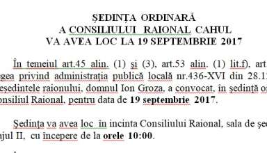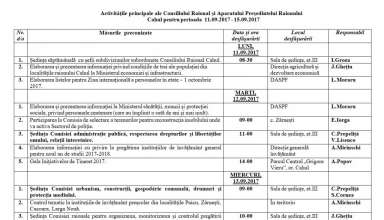 Noutăți Activităţile principale ale Consiliului Raional şi Aparatului Preşedintelui Raionului Cahul pentru perioada 11.09.2017 – 15.09.2017
