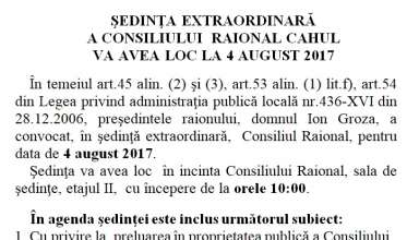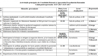 Noutăți Activităţile principale ale Consiliului Raional şi Aparatului Preşedintelui Raionului Cahul pentru perioada 07.08.2017 – 13.08.2017